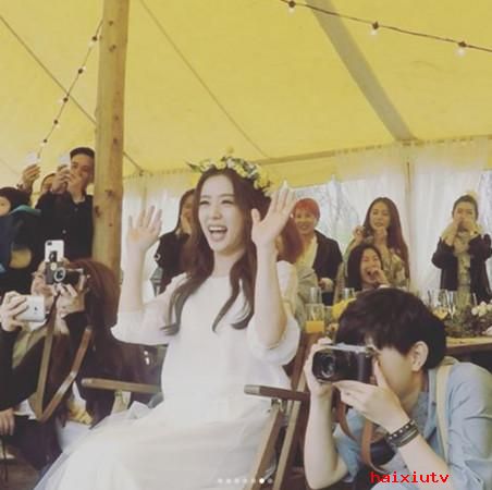 林宥嘉新婚派对热舞博娇妻一笑 丁文琪看着林宥嘉的惊喜舞步哈哈大笑,脸上尽是甜蜜,还跟着做出几个招牌手势,Selina、Hebe等站在后方的宾客也爆笑不止,将派对气氛炒热到最高点,最后小两口在众人的祝福下,携手切下结婚蛋糕。