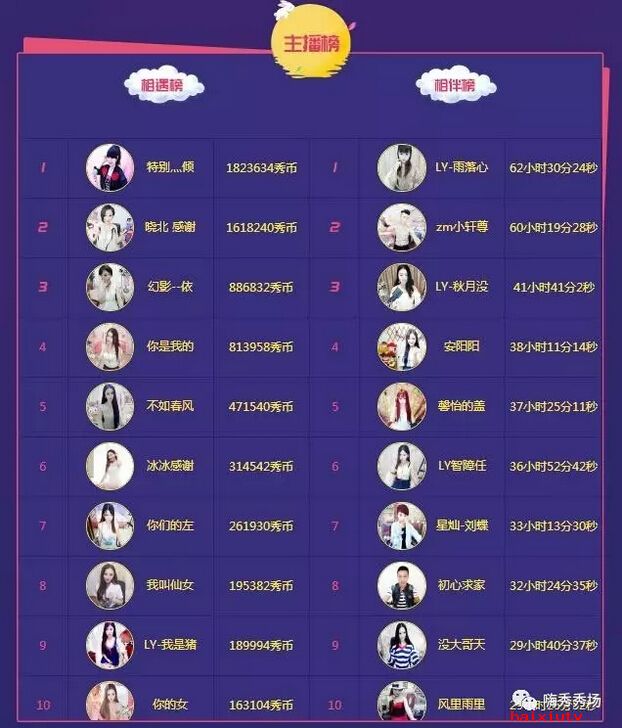 嗨秀秀场|七夕有你第3天主播榜