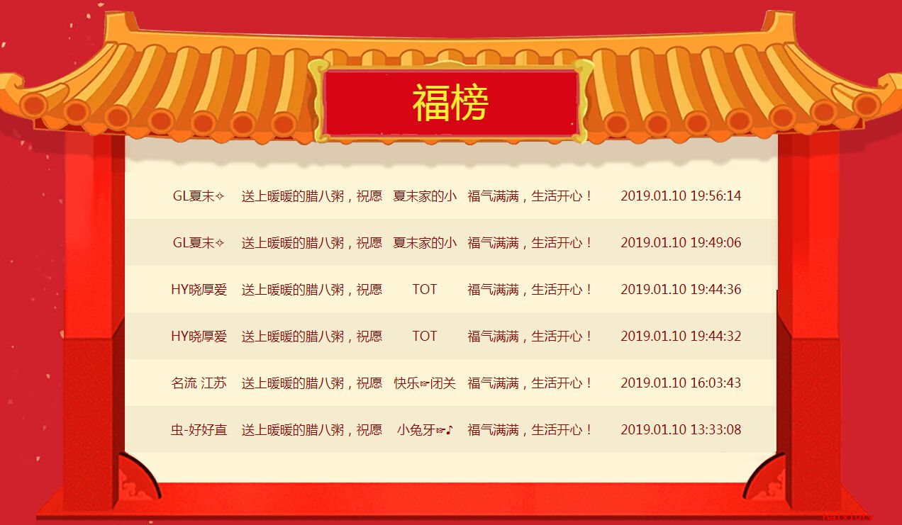 只要给主播送礼物,就有可能收到主播送出的腊八粥,助力主播能够收到更多腊八粥礼物,收到腊八粥还会有福气值,排行榜上福气值高的用户还会有更多奖励,限量版座驾和海量秀币等你来。
